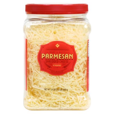 Sam's Club. You can buy shredded parmesan at any store but it will cost you a lot more if you buy the smaller packages.